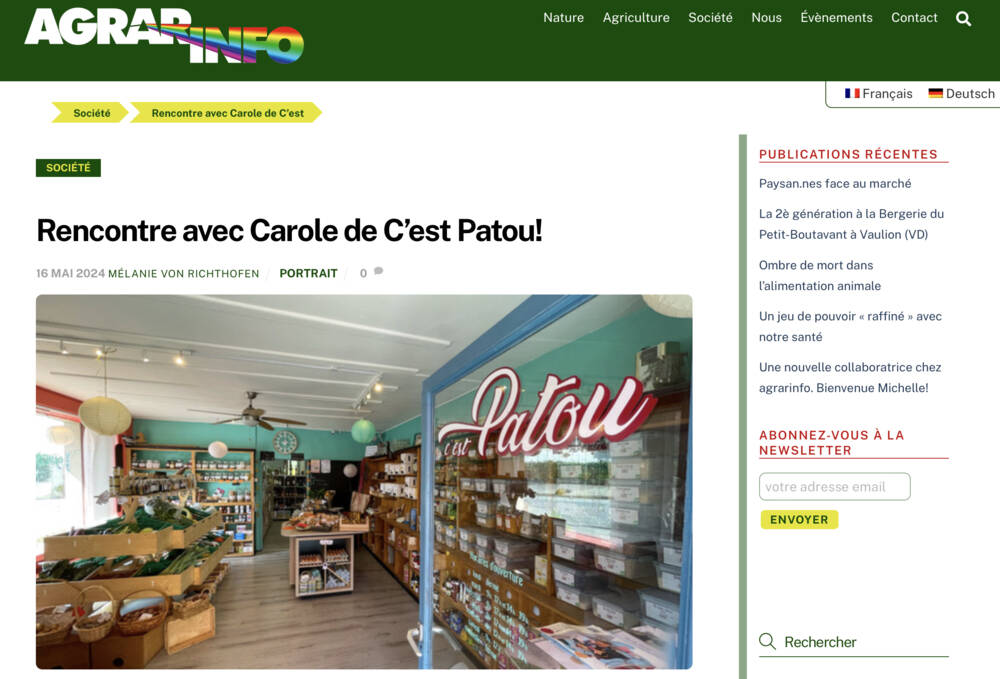 On adore venir faire nos courses chez Patou (Jeu de mot pour C’est Patou, l’épicerie bio de Trelex), commander en ligne chez Patou, offrir des cadeaux de chez Patou et on se réjouit de pouvoir entrer un peu plus dans ton monde. Chaque village suisse devrait être doté d’une épicerie comme la tienne avec le nécessaire à proximité et surtout sans emballage inutile. Alors la première question qui me vient, avec une petite pointe d’admiration, c’est: Qu’est-ce qui t’a poussée à franchir le pas d’ouvrir une épicerie ?
