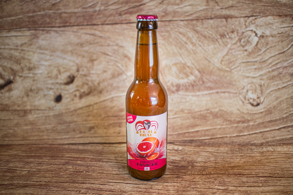 Panaché avec alcool à base d’orange sanguine et de pamplemousse, brassé de manière artisanale.