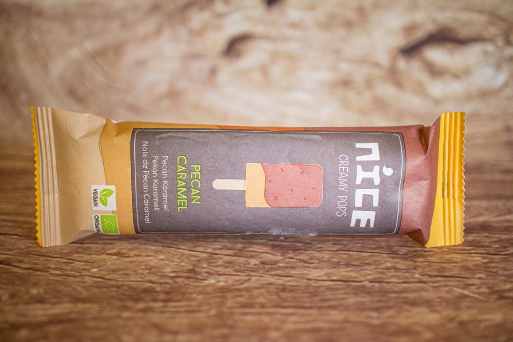 Êtes-vous d'humeur pour une délicieuse décadence crémeuse ? Cette sucette glacée a pas moins de trois couches de bonheur : du lait de noix de cajou crémeux fait maison avec du sirop d'érable doré, une trempette au chocolat, garnie de noix de pécans croustillantes.