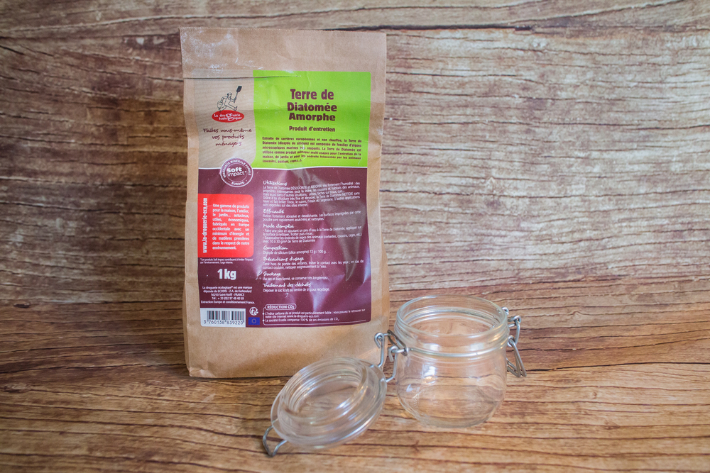 Extraite de carrières européennes et non chauffée, la Terre de Diatomée (dioxyde de silicium) est composée de fossiles d'algues marines microscopiques très coupants. La Terre de Diatomée est utilisée comme produit ménager multi-usages pour l'entretien de la maison, du jardin et pour les endroits fréquentés par les animaux (coussins, paniers, cages,...)