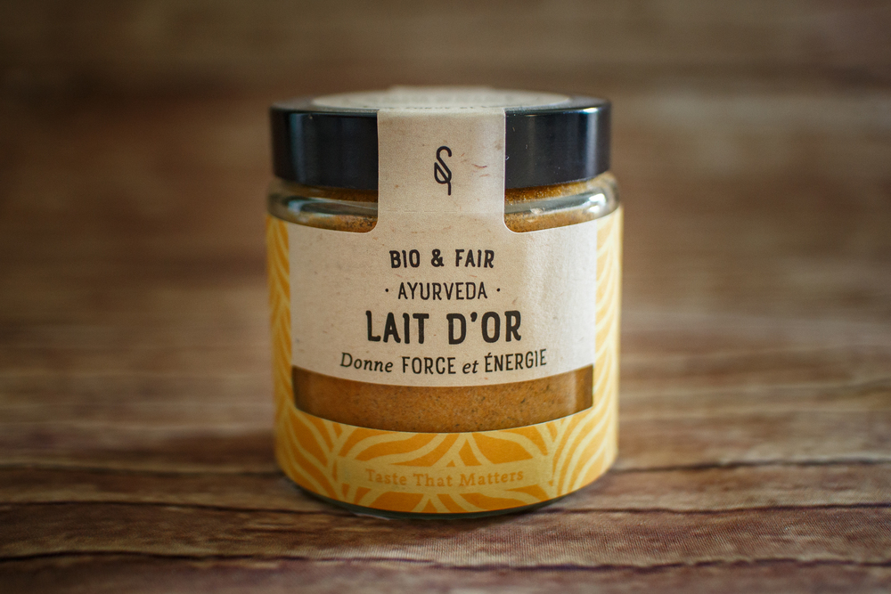Nous avons développé notre mélange de curcuma latte en collaboration avec nos spécialistes en Ayurveda en Inde. Il est composé de curcuma, de gingembre, de poivre, de cannelle et de cardamome. La cannelle et la cardamome lui procurent une saveur florale et harmonieuse, qui en fait une alternative savoureuse au thé ou au chocolat chaud. Le goût se rapproche du thé chai.composition